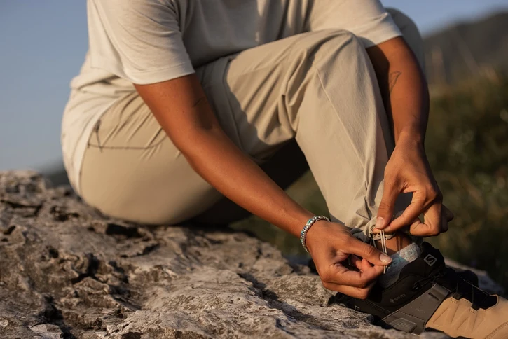Atunci când îți alegi pantalonii de drumeție, este important să ai libertate de mișcare dar și protecție, existând diferite modele concepute pentru toate tipurile de aventuri. Variantele includ pantaloni din softshell, pantaloni din material hidrofob sau hidrofug și pantaloni cu diferite grade de elasticitate. Pentru drumețiile de vară poți merge și cu pantaloni scurți sau pantaloni convertibili (scurți/lungi). Reține că dacă te plimbi prin pădure sau prin iarbă înaltă, mai ales vara, o pereche de pantaloni îți va oferi o protecție suplimentară împotriva căpușelor. Pentru drumețiile scurte, o altă opțiune este să porți colanți, care oferă avantajul cheie de a fi foarte ușori și confortabili!