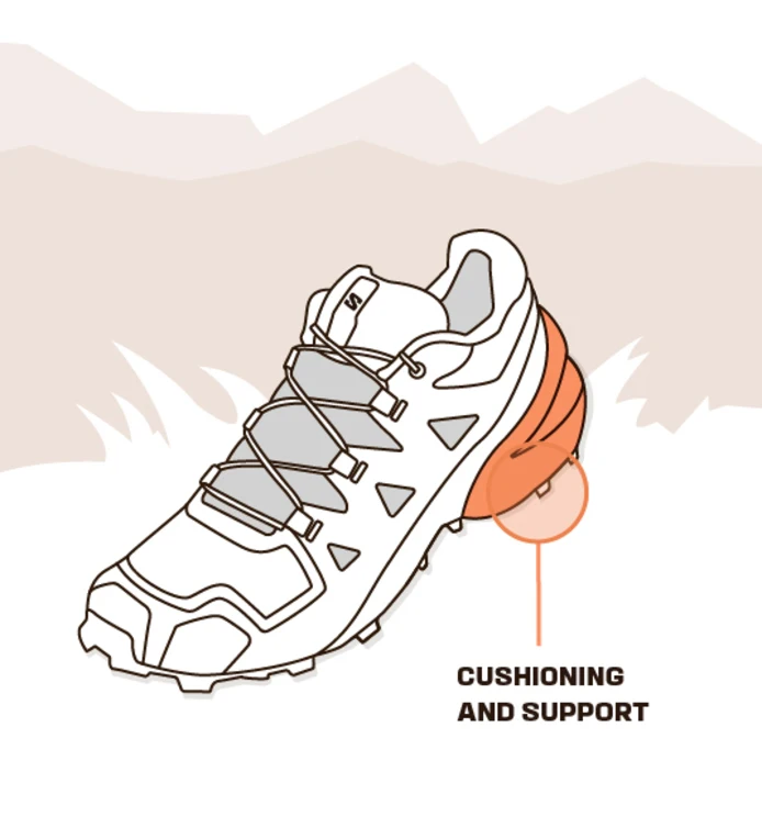 Cu cât crampoanele (profilurile de pe talpa exterioară) sunt mai adânci, cu atât pantoful îți va oferi o tracțiune mai bună pe teren noroios, în timp ce crampoanele mai scurte și mai apropiate sunt suficiente pentru traseele uscate și dure și îți vor oferi mai multă stabilitate și eficiență.Mulți pantofi de trail running au o talpă versatilă, care poate fi folosită cu succes pe orice teren.