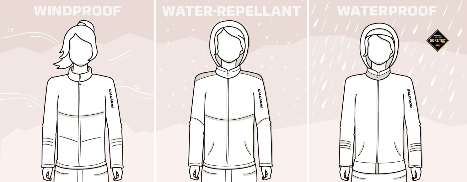 O jachetă hidrofugă, care nu are membrană, este foarte respirabilă și permite transpirației să scape mai eficient. De asemenea, oferă o protecție adecvată împotriva ploii slabe sau puternice atunci când stai pe afară mai puțin de o oră.